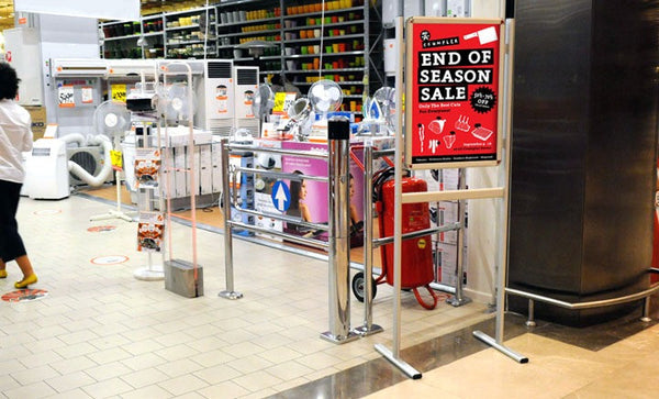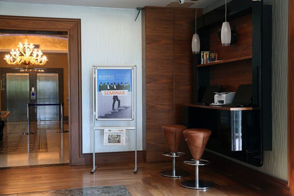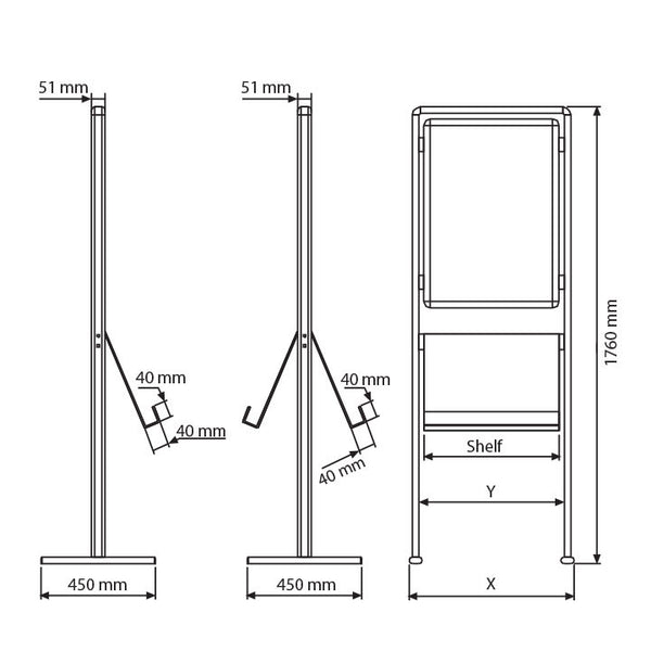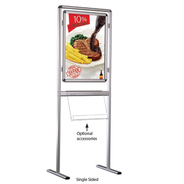 • One or two faced acrylic shelves and wheels can be added to the info boards • Anti-reflex PET cover is presented in each unit. • 32 mm profile snap frame provides showing the info.